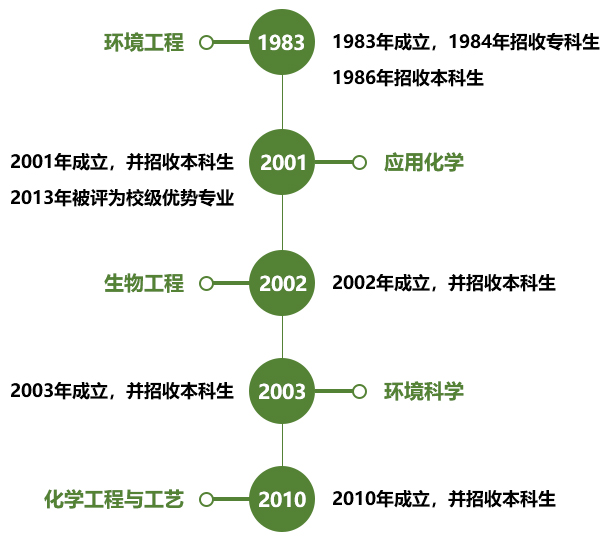 ● 1983年设立环境工程专业,为全国较早设立此专业的高校,1984年招收环境工程专业专科生,1986年招收本科生